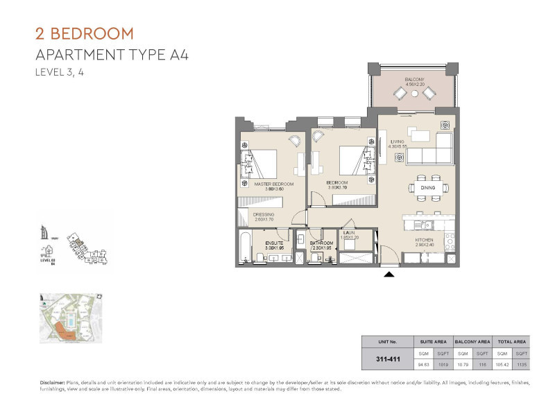 | Unit Type | Avg Unit Size (SqFt) | Approx Service Fee (AED/SqFt) |