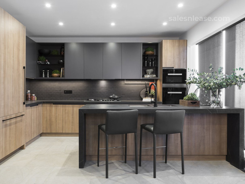 - Living rooms and kitchens offer a spacious and interconnected feel with laminated wood and lacquer joinery.